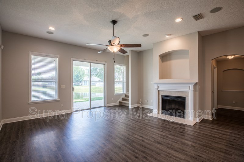 Beautiful home features split bedroom floor plan with foyer, large great room with fireplace, eat-in kitchen and a covered patio overlooking lake. The second floor includes an entertainment room and second master.